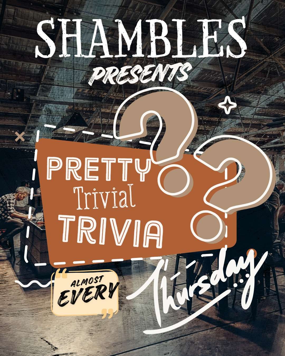 (Almost) every Thursday, 7–9pm, Michael Blake takes the reins and throws down a trivia night like no other. One week it’s obscure knowledge, the next it’s paper-folding prowess or a truly unhinged Chewbacca impression. Honestly, it depends on his mood, and we wouldn’t have it any other way.